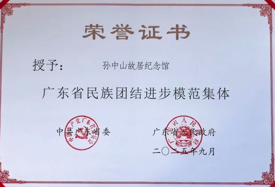 近日,廣東省民族團(tuán)結(jié)進(jìn)步表彰大會(huì)隆重召開,孫中山故居紀(jì)念館(以下簡(jiǎn)稱“紀(jì)念館”)憑借在鑄牢中華民族共同體意識(shí)工作中的突出成效,被省委、省政府授予“廣東省民族團(tuán)結(jié)進(jìn)步模范集體”榮譽(yù)稱號(hào)。