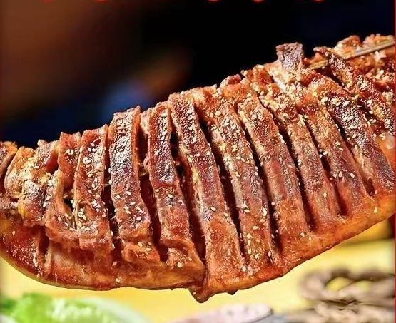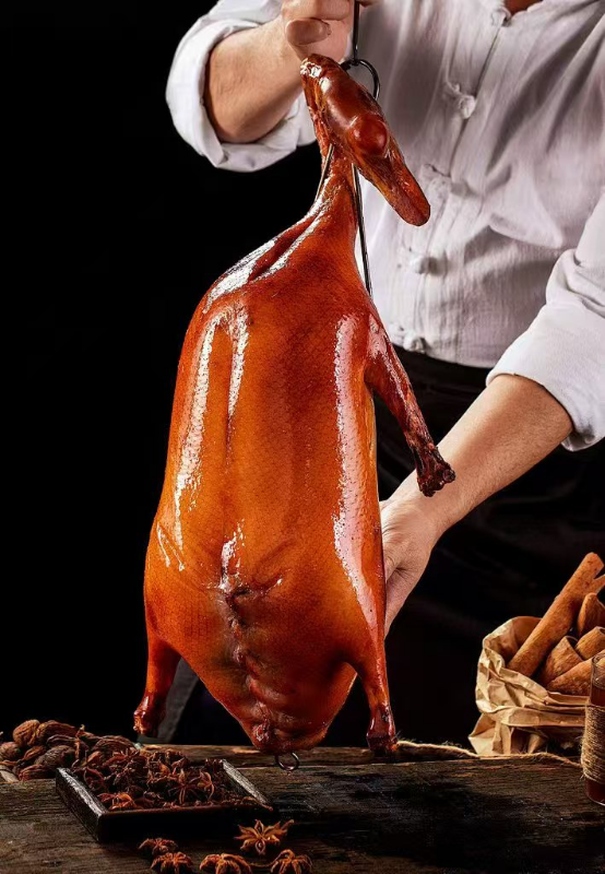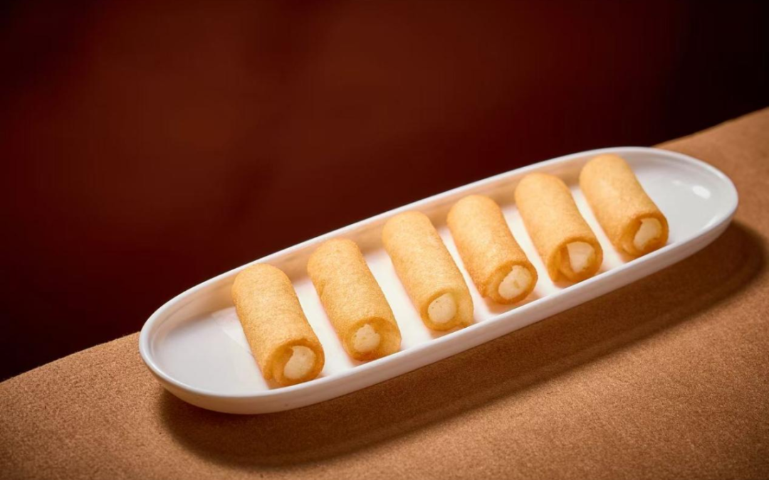 精選五花肉切片,用秘制腌料腌制,油炸到金黃,配以京蔥絲、哈密瓜條,北京片皮鴨面皮包裹,蘸點秘制醬汁食用,風(fēng)味獨特,口感清爽,酥脆肉嫩,層次豐富。