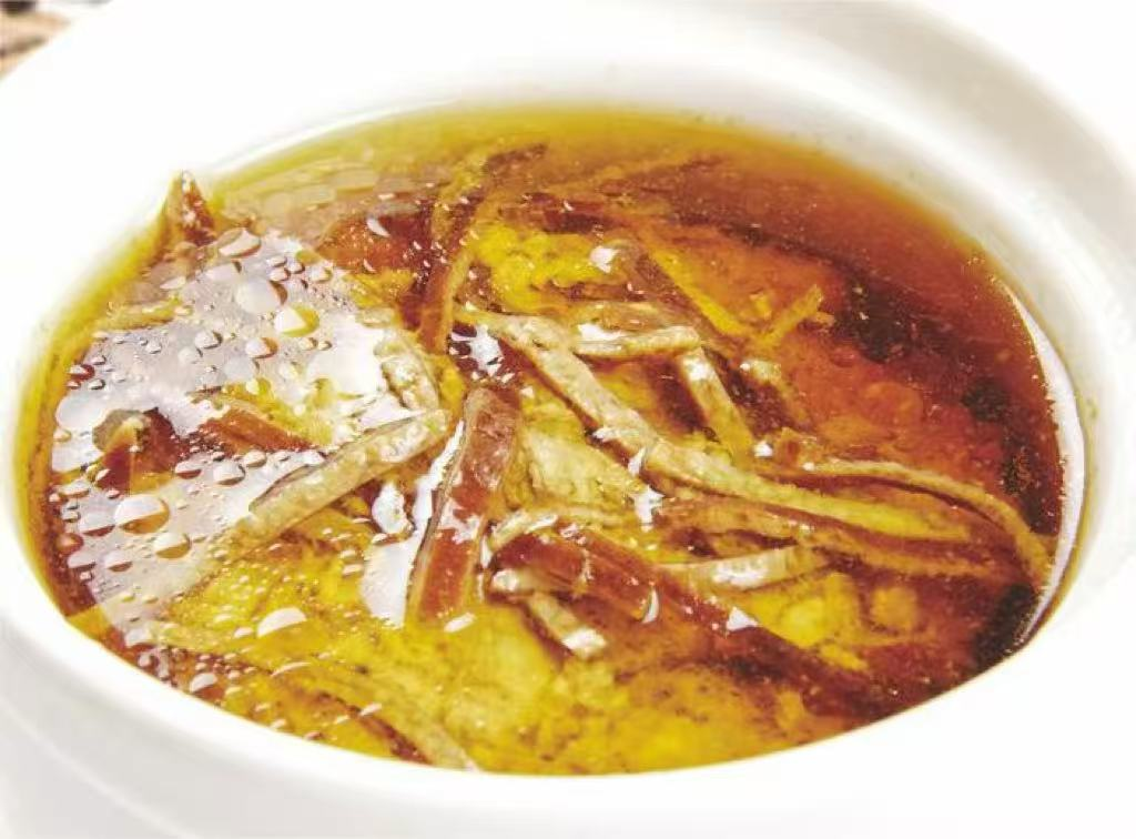 以水發(fā)南美海參、大蔥、鮑汁為主,配以適量調(diào)料,砂窩煮制,海參清鮮,蔥香醇厚,柔軟香滑,營養(yǎng)豐富。