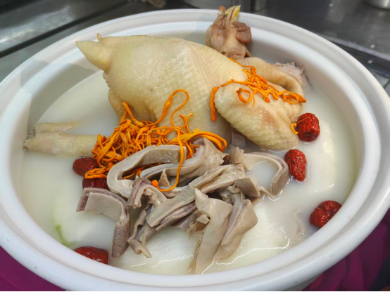 選用各種野生菌菇,180天以上連州土雞,配以農(nóng)夫山泉水,中火煮約20分鐘,再添少許鹽激發(fā)鮮香美味。
