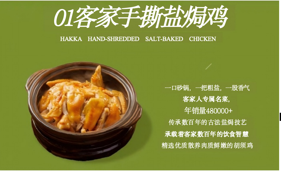 堅持傳統(tǒng)“炒鹽焗雞”工藝,皮帶焦香,肉帶熏香,骨帶咸香。