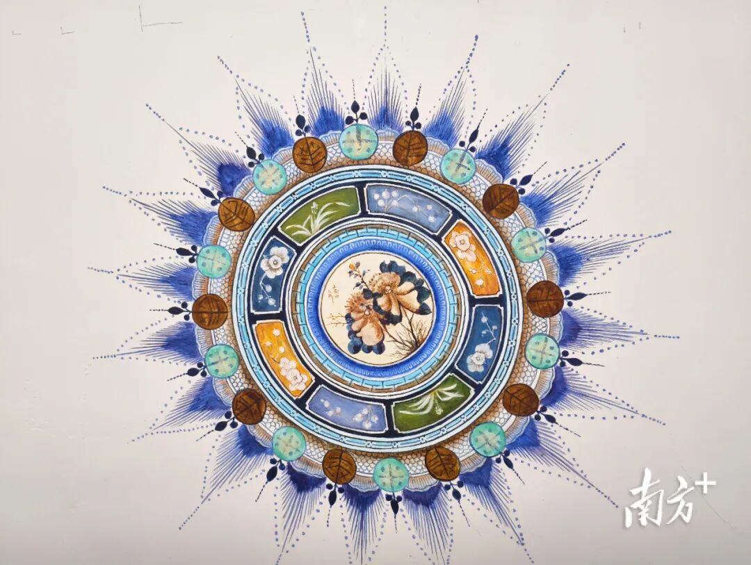 在孫文西路步行街的改造中,天花板上百年歷史的“燈影花”圖案得到了精心保護(hù)。這些花卉、樹葉、鳥獸圖案顏色鮮明,格調(diào)雅致,是民國時(shí)期風(fēng)靡一時(shí)的“天花的藝術(shù)”,在燈光照射下會呈現(xiàn)出五彩紛呈的光影效果。