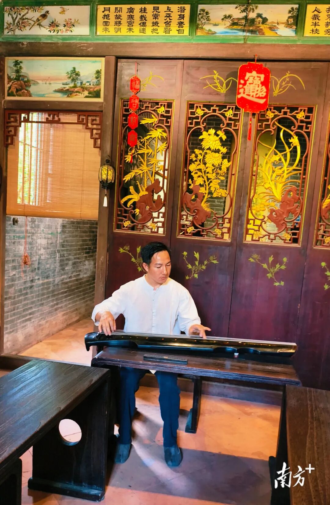 “左琴右茶”主理人花費(fèi)十余年,養(yǎng)護(hù)百年僑房,保留青磚木窗、灰塑瓦脊,引入古琴教學(xué)、茶道體驗(yàn)與非遺展示,打造出一個(gè)“可居、可游、可學(xué)”的文化空間。