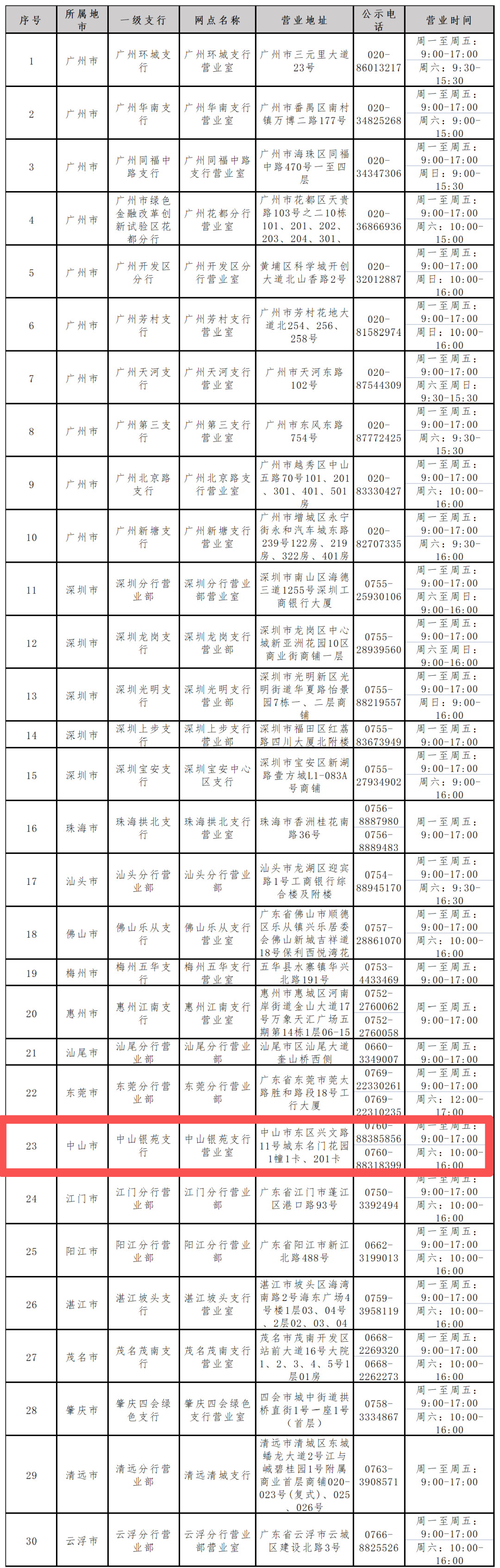 中國工商銀行30家網(wǎng)點信息(僅銷售廣東賽區(qū)門票)